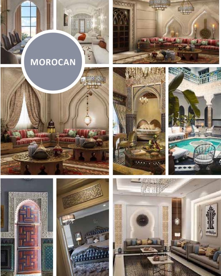 Warm and expressive, characterized by earthy tones, arches, textured walls, and a strong connection to Mediterranean heritage.