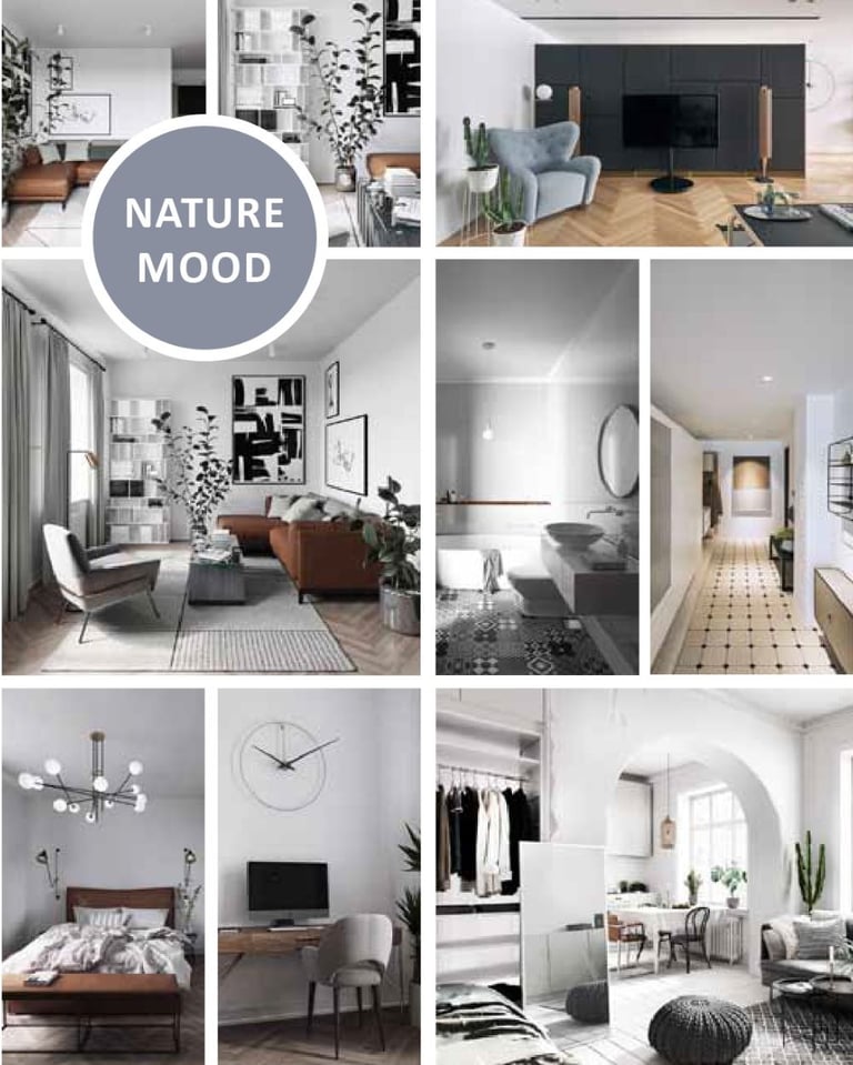 Inspired by the outdoors, focusing on natural materials, earthy tones, organic forms, and a calm, grounded atmosphere.