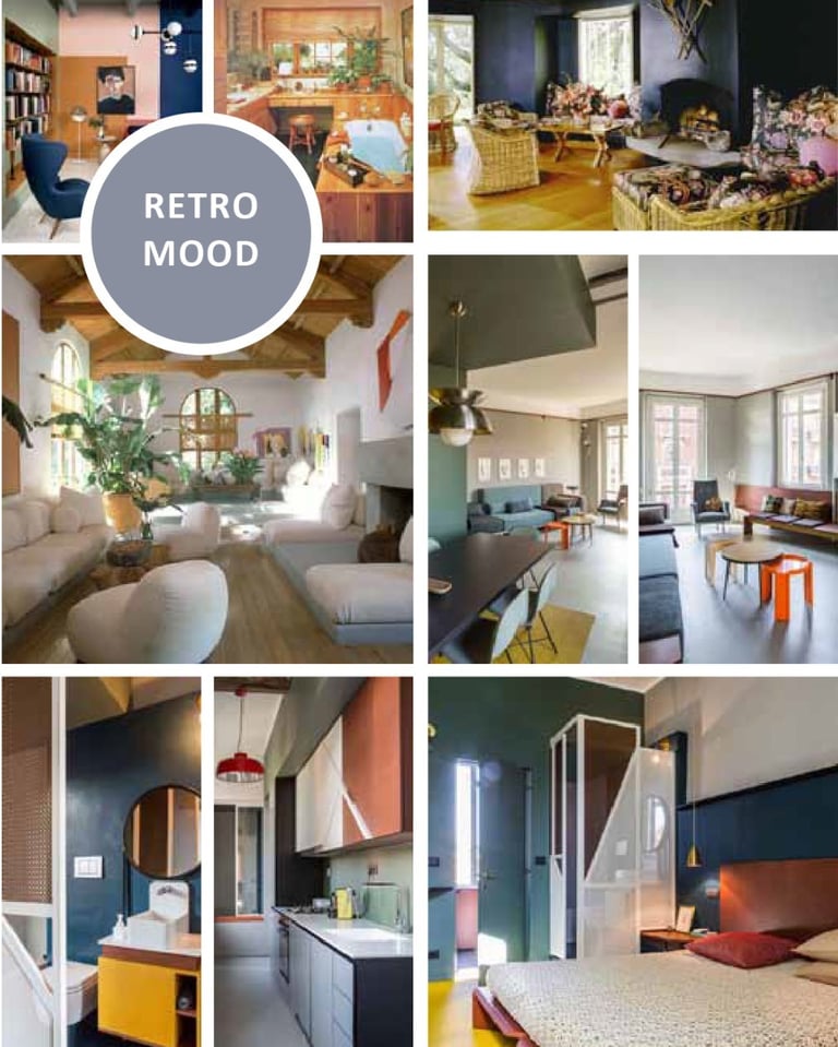 Playful and nostalgic, inspired by past decades with bold colors, iconic shapes, and expressive design elements.
