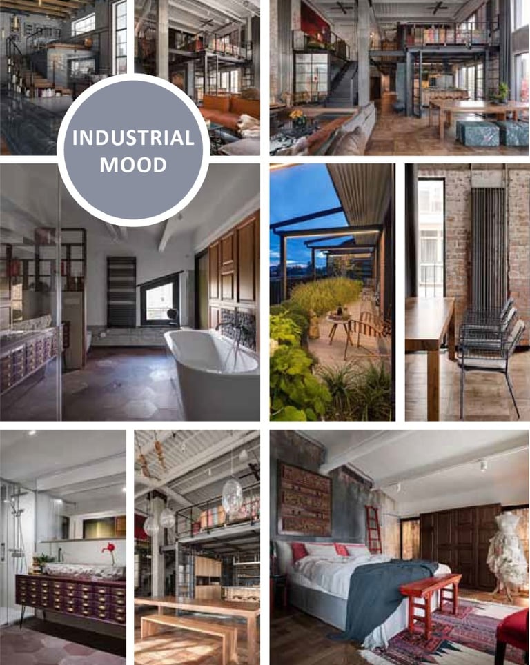 Raw and edgy, featuring exposed materials, bold contrasts, and a modern interpretation of industrial spaces.